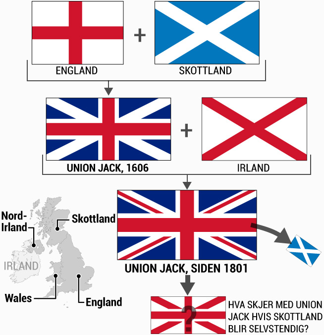 Storbritannias flagg har en lang og interessant historie. Storbritannias flagg har en stor historisk historieverdi. Ved tilstelninger i norge hvor flere nasjoners flagg er samlet, skal disse i alfabetisk rekkefølge etter nasjoners navn på fransk med dets kortform og det norske flagget skal alltid heises først og fires sist. På grunn av de relative posisjonene til saltvannene til st. Hva skal storbritannia gjøre med flagget sitt hvis skottland melder seg ut av unionen?